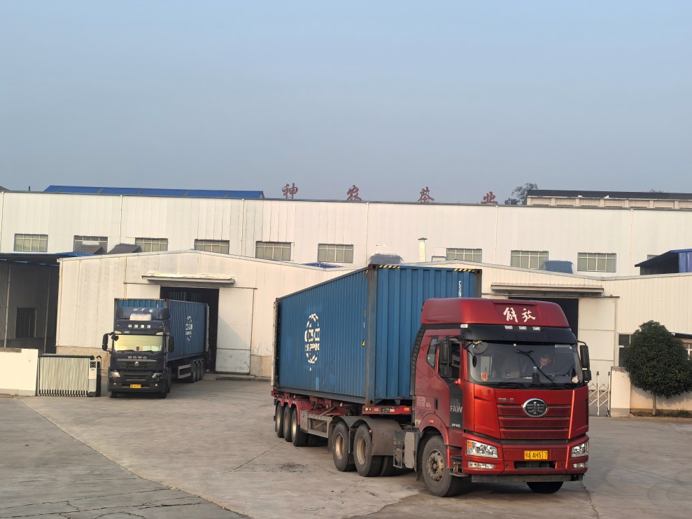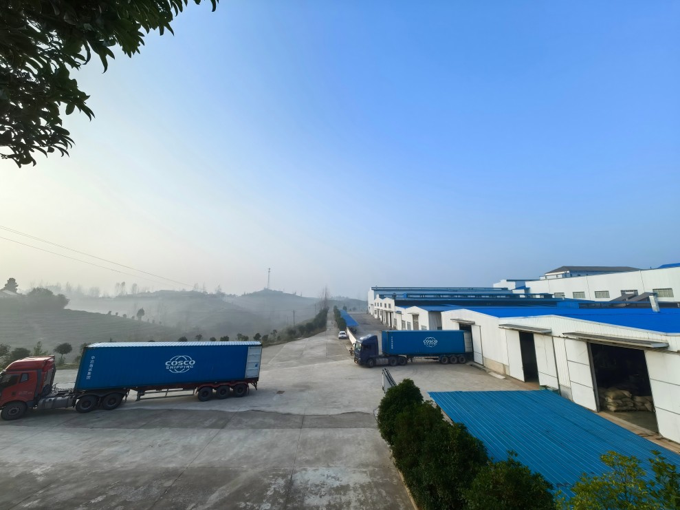 10月28日清晨,秋意正濃,茶山云霧繚繞,美不勝收。兩輛裝滿神農(nóng)有機綠片茶的集裝箱車輛緩緩從進出口公司的成品倉庫內(nèi)駛出,這些茶葉將飄洋過海到達德國漢堡。