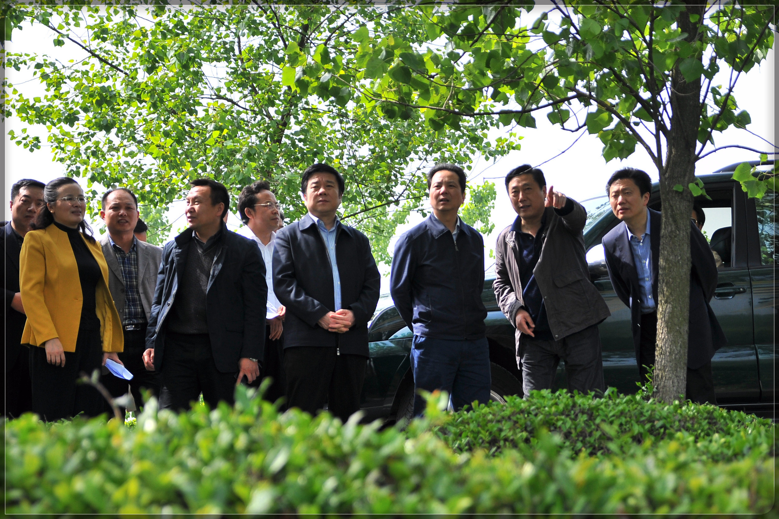 市委書記劉嘵鳴(前排右三)、市委常委、市委秘書長涂勝華(前排左三)、市委常委組織部長郭永紅(前排左一)、隨縣縣委書記陳德貴(二排左三)。隨縣組織部部長齊道一(前排右一)、洪山鎮(zhèn)黨委書記王笠(前排左二)隨州市神農茶業(yè)集團董事長劉三運(前排右二)。