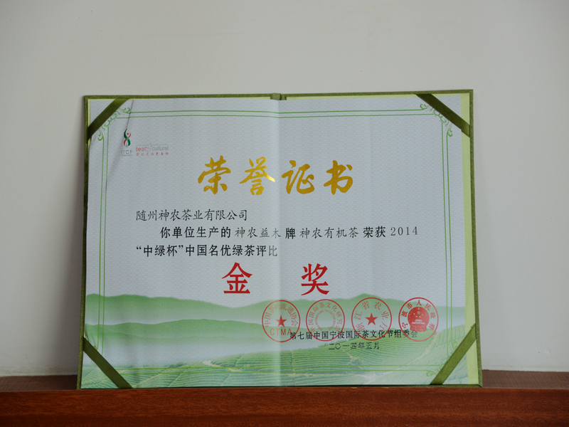 神農(nóng)有機(jī)茶喜獲本屆“中綠杯”中國(guó)名優(yōu)綠茶評(píng)比“金獎(jiǎng)”