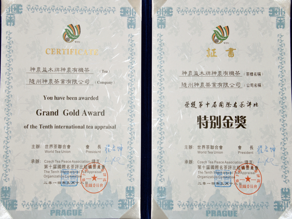 “神農(nóng)有機(jī)茶”榮獲第十屆國際名茶評比“特別金獎”